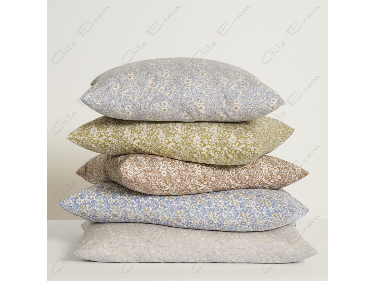 כרית פרחונית ופופולרית מאוד בצבע אדמה מעושן ויפה עם פרחים באוף-וויט מבדי בית Liberty.