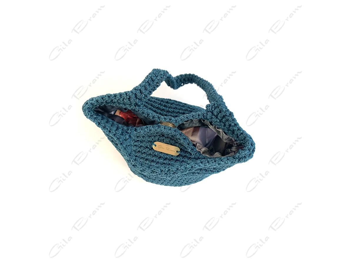 תיק סרוג בסריגת קרושה במסרגה אחת- עבודת-יד .